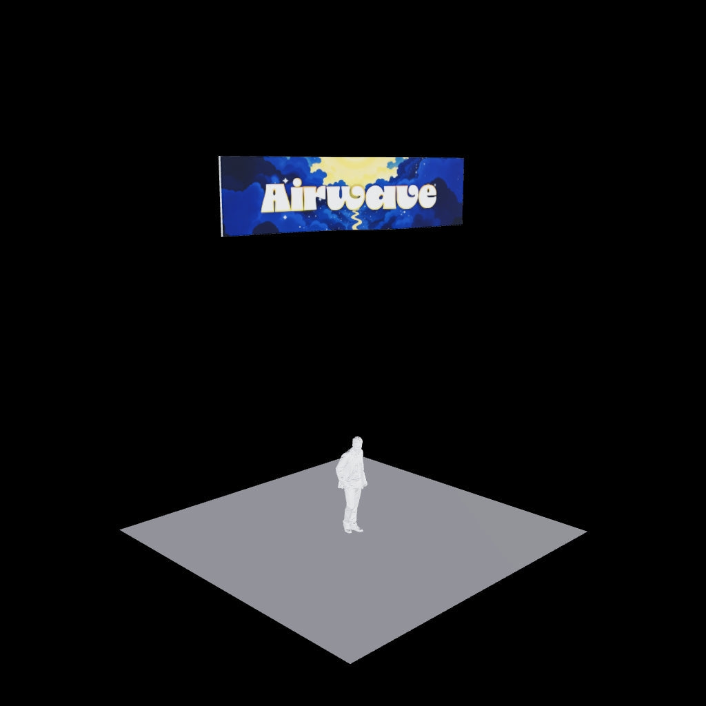 Product Overview: The wave-shaped overhead hanging banner introduces a fluid and graceful element to your trade show booth. Its flowing design captivates attendees, offering a unique alternative to traditional shapes, it could also be described as an S-shape hanging banner. Available in different sizes, it complements both contemporary and classic exhibit themes.