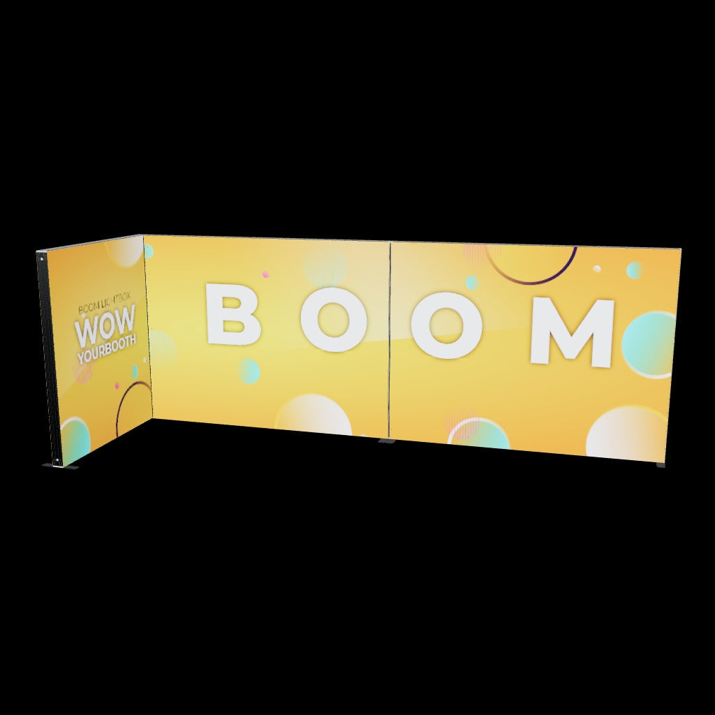 Elevate your exhibit booth with the Boom 20ft x 10ft Modular Lightbox (Configuration H2). This display features double-sided SEG graphics illuminated by integrated LED lighting, delivering seamless, vibrant visuals that attract attention. The unique L-shape configuration allows you to create a striking corner setup, maximizing visibility from multiple angles and making the most of your exhibit space.