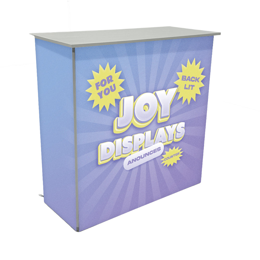 Lightweight, portable, and easy to set up, the LumiBox Backlit Counter combines professional presentation with cutting-edge illumination. The upgraded backlit print graphics capture attention instantly—perfect for trade shows, exhibit booths, and event displays where first impressions matter most.